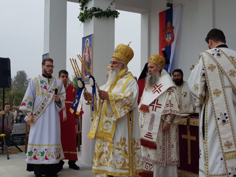 Епископ Милутин са епископима Фотијем и Лаврентијем служио освећење Храма Светог Прокопија у Лозници 23.10.2018.