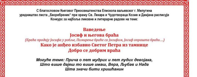 Конкурс за најбоље литерарне и ликовне радове (уредништво листа Бесребреник)