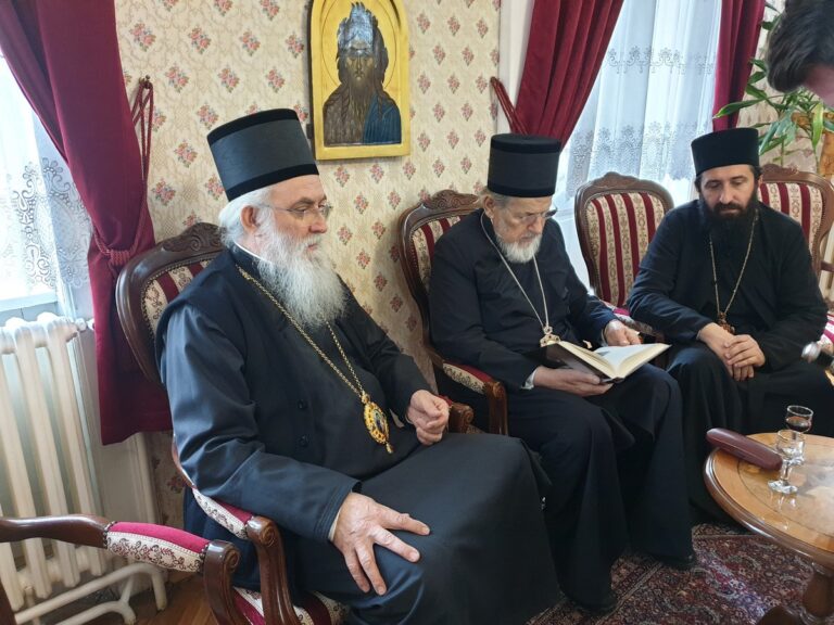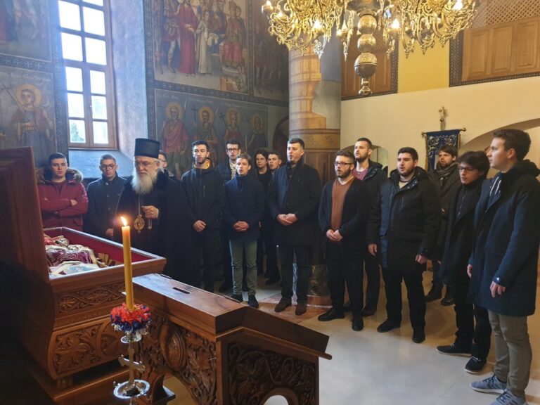 Епископ Милутин са челницима Општине Лајковац у манастиру Боговађа на имендану мати Агније 03.02.2020.