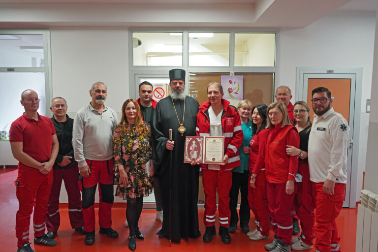 Епископ Исихије посетио Дом здравља и уручио Архипастирску грамату служби Хитне медицинске помоћи 13.04.2023.