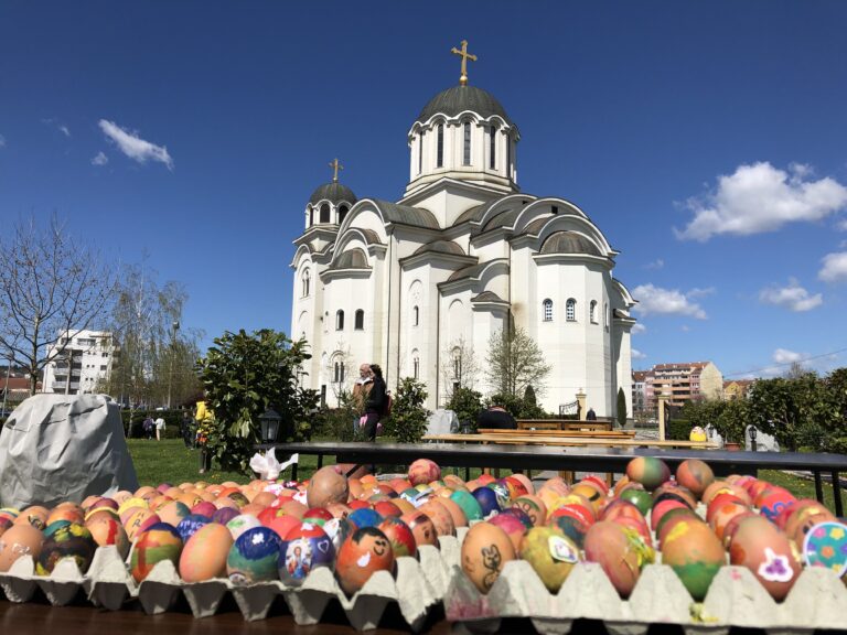 Шарање васкршњих јаја у порти Храма Светог Георгија