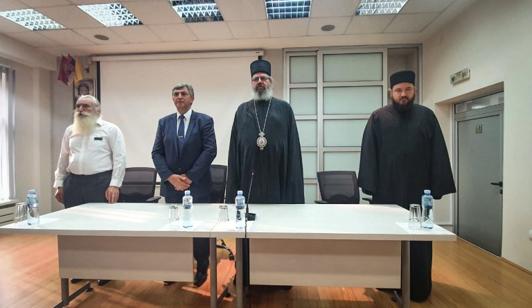 Свештеници Саша Максимовић и Далибор Чкојић на прослави Дана школе у Техничкој школи Ваљево 07.10.2022.