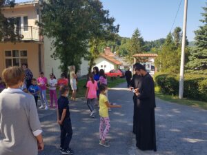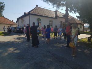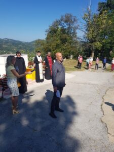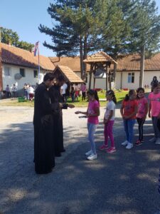 У име слављеника, колектива и ученика ОШ „Здравко Јовановић“, добродошлицу је пожелео директор Влада Вујић, упутивши благодарје блаженопочившем Владики Милутину, дародавцу чесме, некадашњем ђаку, а засигурно вечном узору деци која расту у овим прелепим пределима. Традиционално, за срећан почетак школске године, у име Епархијског одбора за веронауку, секретар јереј Далибор Чкојић уручио им је крстиће и молитвенике, а наставницима заштитне маске.