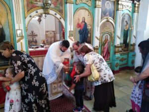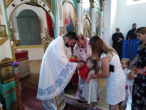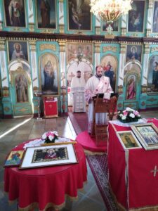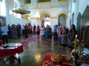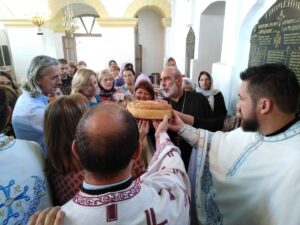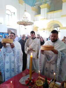 Након Свете Литургије преломљен је славски колач. Свечана трпеза приређена је у складу са мерама заштите у условима епидемије корона вируса.