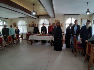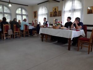 Након проповеди проте Милинка и причешћа великог броја верника, пререзан је славски колач и освештано је жито, а празник је још једном свима сабранима честитао началствујући свештеник, прота Љубисав Аџић. На трпези љубави, у Парохијском дому при Храму Покрова Пресвете Богородице, где су се поред свештенства окупили чланови и пријатељи заједнице, гуслар Вељко Станковић из Ваљева одгуслао је неколико песама, од којих је посебне емоције код сабраних изазвала она коу је посветио мајору Милану Тепићу, народном хероју Југославије, који је погинуо 1991. године у Хрватској. Протонамесник Дарко Ђурђевић, архијерејски намесник ваљевски први, честитајући славу богомољцима и свима сабранима, истакао је да празник Воздвижења Часног Крста открива суштину нашег живота. „Крст носити нама је суђено“, подвукао је отац Дарко, похваливши чланове заједнице који „одржавају пламен и веру богомољачког погледа на свет“.