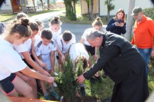 - Свети Сава је раширио јеванђељско учење у српском народу. Заједно са својим оцем и браћом, подизао је цркве и манастире – изворишта духовности, писмености, културе и уметности. Њихов подвиг неимарства у славу Божју наставили су и потомци светородне немањићке лозе. Овде имамо чесму као извориште свеже планинске воде, школу – изворишта знања, а у близини је извориште духовности, прелепи манастир Пустиња. то су велики благослови за све нас – рекао је прота Милинко Јовић, духовник ПНХЗ „Воздвиженије Часног Крста“.