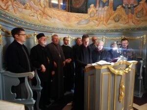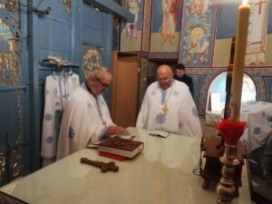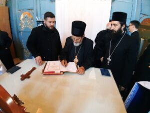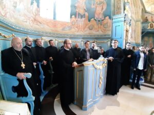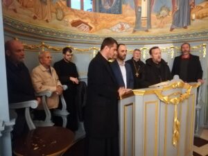 У име свештенства и свештеномонаштва Епархије ваљевске Владики Лаврентију добродошлицу је пожелео архијерејски заменик Епископа ваљевског протонамесник Филип Јаковљевић. Он је захвалио администратору Епархије ваљевске на узнетим молитвама и освећењу фрескописа, које смо данас дочекали, а чија је израда отпочела пре тачно деценију, уз благослов блаженопочившег Владике Милутина.