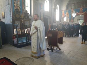 У својој беседи отац Велимир Крстић подсетио је вернике да наша Црква слави чудесно јављање Богомајке о великој радости покровитељства – заступништва Мајке Божије над хришћанима, о њеној великој љубави према човеку и целом свету. Свака људска душа је њој мила и драга, јер смо ми сви њена деца, као и да је велика част, а и обавеза братства, славити ову славу.