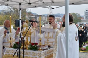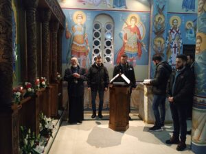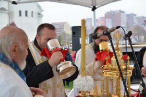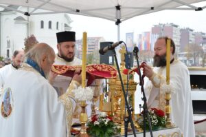 - Све ово вам говорим да не будемо плашљиви у овом времену. Да не заборавимо да се радујемо животу. Да се радујемо нашем ближњем и доласку на Свету Литургију као што се ја сада радујем гледајући вас на овој хладноћи како се молите Светом Нектарију, Васкрслом Христу и да вам хладноћа не смета. Молим се Богу и Светом Нектарију да донесе топлоту у ваша срца, ваше мисли и ваше душе – поручио је протонамесник Филип Јаковљевић, захваливши свим учесницима литургијског сабрања у порти Храма Светог Нектарија што су дошли да данас славе Бога и на свему Му благодаре. Такође, отац Филип Јаковљевић заблагодарио је и новоформираном хору свештеника, предвођеном оцем Бранком Чолићем, који је својим појањем умножио лепоту данашњег богослужења.