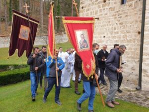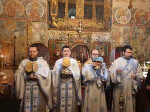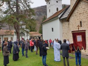 - Зар се можемо плашити када је Бог победио свет? Зар се можемо плашити када је Он рекао да треба да будемо истински борци и носимо мач духовни, а вера нам буде штит? Да се наоружавамо добрим делима и врлинама и да ћемо тако покорити свет. Нема страха, браћо и сестре! Једино о чему треба да бринемо јесте да нас Бог, Пресвета Богородица и светитељи препознају као своје, као део народа Божјег, када будемо стали испред Њега. Нема страха, треба да се радујемо Богу и једни и другима – закључио је отац Бранко Чолић, честитајући славу обитељи манастира Пустиња и свим учесницима литургијског сабрања.