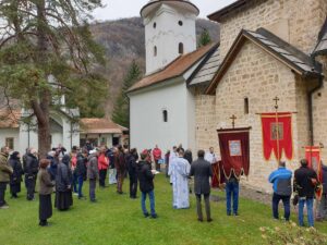 Након Свете Литургије, начињен је литијски опход око храма, одслужена молитва за упокојене и преломљен славски колач. Традиционална трпеза у манастирском конаку ове године је изостала, како би мере предострожности у време епидемије биле испоштоване.