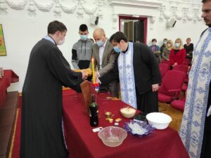 Обред резања славског колача обавио је надлежни парох протонамесник Слободан Алексић, уз саслуживање архијерејског намесника првог ваљевског, протонамесника Дарка Ђурђевића, вероучитеља школе протонамесника Невена Лукића и ђакона Драгана Станојевића.