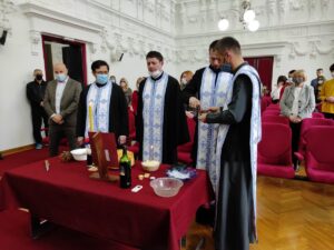 - Сви имамо родитеље, а Свети Сава је наш препородитељ – неко ко нас је препородио и учинио и чини да будемо бољи. Зато смо сви ми данас Светосавци и деца Светог Саве. Требало би сви да будемо деца и угледамо се на дечју незлобивост. Свето писмо нас учи да будемо „мудри као змије, а безазлени као голубови“. То значи да, развијајући умне способности, упоредо развијамо и доброту у себи – поручио је отац Дарко Ђурђевић. Он је честитао славу колективу гимназије, пожелевши да их Свети Сава ћува на њиховом путу образовања нових нараштаја нашег народа.