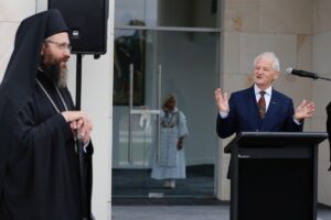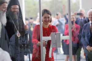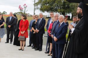 Након обраћања Епископа, уследили су говори г. Џефа Њукома, председника удружења независних школа Новог Јужног Велса, уваженог г. Филипа Радока, градоначелника Хорнсбија, да би се на крају обратила и Премијерка која је похвалила овај пројекат Српске заједнице и потом пресекла врпцу и званично отворила Колеџ Светог Саве.
