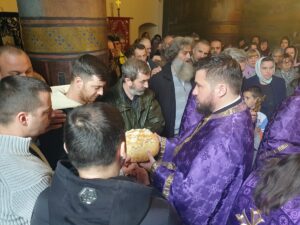 Налазимо се у данима Свете четрдесетнице, времену у коме ми себи морамо поставити та питања. Читајући Књигу постања, враћамо се на питање ко је заправо човек и да ли је у нама шта остало од човека. Пост није само уздржавање од мрсне хране, пост је и молитва, али на првом месту покајање, чему је предуслов сусрет са собом и сагледавање колико је боголикости остало у нама. Радећи само, човек се не остварује, већ„постварује“- постаје сличан стварима, подсетио је протонамесник Дарко Ђурђевић на речи недавно упокојеног Владике Атанасија, наслоњене на мисао новопросијавшег светитеља.