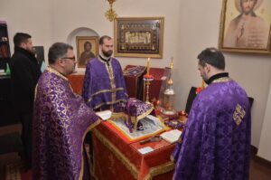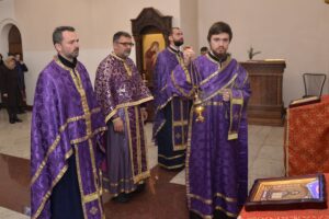 У години за нама изгубили смо велике пастире наше Свете Цркве. Најпре нашег Владику Милутина, потом Митрополита црногорско – приморског Амфилохија и Патријарха српског Иринеја, а недавно и умировљеног Епископа захумско – херцеговачког Атанасија. Дакле, на небо се преселио један мали архипастирски сабор. Ми који верујемо у васкрсење, искрено смо уверени да се они сада радују са Христом на небу и желе да се ми у радости сабирамо у храмовима Божјим, подсетио је у литургијској проповеди на губитке Српске Цркве у години за нама протонамесник Саша Максимовић-.