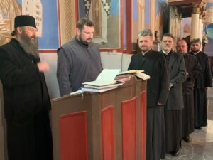Данас приступамо Светој тајни исповести. Оперимо своју душу од свакодневних грехова и имајмо на уму речи: „ Ако хоћеш Царство небеско падни на колена и покај се“. Да би само на такав начин Божија благодат била већа на нама. Ми смо клир Христов, што ће рећи „ они који су изабрани“ . Трудимо се да не будемо као они који су прокоцкали хаљине Христове, да не прокоцкамо и ми своју шансу да изградимо Цркву Христову, закључио је протојереј Небојша Миливојевић, архијерејски намесник тамнавски.