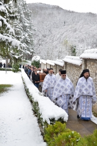 - Данас прослављамо Благовести поред моштију Светог старца Јустина, великог по вери његовој и животу са Христом, Кога је увек носио у својој души, молитви и срцу. Данас, по први пут с нама на овај дивни празник у ћелијској светињи нису велики јерарси и оци наши Митрополит Амфилохије, Владика Милутин, Владика Атанасије и сви други који су се преселили из овог света и отишли Творцу. Они су животом и делом својим ишли уским, крстоносним путем. Увек смирени, успињали су се на планину спасења. Знамо и верујемо да су они овде данас међу нама са Светим Јустином и Николајем, са Светим Савом и свим Светим Србима. Они су са нама данас и са распетим Косовом, косовским, јасеновачким, херцеговачким и свим православним мученицима, који су пострадали за Христа. Они се моле за нас пред престолом Творца за сва страдања и ране наше. Данашњи празник нам доноси велики благослов и пут спасења и савршеног испуњења воље Божје примером Господа, пресвете Богородице и свих светих који се спасавају у Цркви Христовој. Дај Боже да и ми путем одрицања постанемо истинска бића Цркве Христове – закључио је игуман Георгије своје благовештењско слово у манастиру Ћелије.