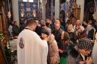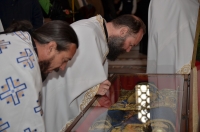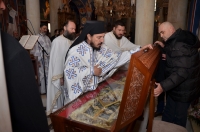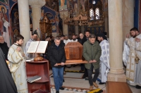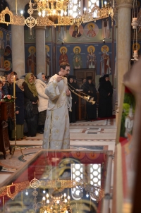 Благовештењског јутра мошти Преподобног Оца Јустина литијски су пренете у његов заветни триолтарни храм посвећен Светом Сави, Светој Марији Египћанки и небеском заштитнику ћелијског молитвеника Светом Јустину мученику. Литургијско сабрање предводио је чувар кивота Светог Владике Николаја игуман Георгије, старешина лелићке обитељи. Честитајући празник мати игуманији Гликерији и њеним сестрама, браћи свештеницима и свим поклоницима, игуман Георгије казао је да је данашњи празник велики, јер је њиме почело испуњење старозаветних пророштава о највећем догађају који се икада десио под сунцем – Васкрсењу Христовом. Празник Благовести је тајна којој се анђели диве, темељ другим празницима , у коме Господ објављује да ће палом и усамљеном роду људском доћи Онај Који према њему има љубав – Господ Исус Христос, Спаситељ свих нас.