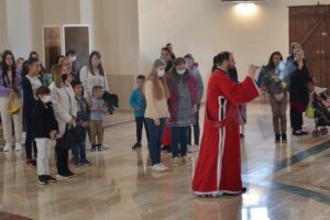 Бацање хаљина и гранчица било је символ дочека цара у то време. Из минута у минут су се испуњавала пророчанства. У личности Господа Христа имамо човека, дрводељиног сина, али и Божјег сина овде међу нама. Господ Христос се распео на крст и три дана након тога дешава се Његово васкрсење, којим су побеђене све патње и сви проблеми људски, јер је смрт побеђена као извор свих патњи и зебњи које човек носи у свом срцу, истакао је отац Срећко Живановић. Данас смо окупљени овде да будемо следбеници Христа попут оних који су пре две хиљаде година клицали:“Благословен који долази у име Господње“, закључио је он.
