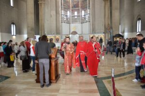 - Христово ходање ка Јерусалиму је било праћено од апостола и верног народа. Оно је заправо икона и слика Цркве на земљи. Као што видите на Литургији, свештеници служе, верни народ се окупља око речи Христове и тела и крви Његове. На данашњи дан верници и апостоли су се окупили на уласку у Јерусалим и онда почиње чудесно откровење и откривање истине, која је скривана хиљадама година уназад. Она се пројављује у личности Исуса Христа, дуго чеканог месије – рекао је протонамесник Срећко Живановић.