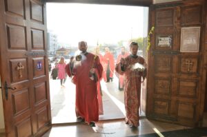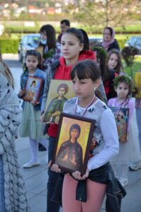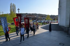 Прослављање Врбице заокружено је трократним литијским опходом око храма у коме су учествовали сви сабрани.