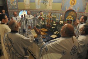 Најрадоснији хришћански празник – Васкрс молитвено је и свечано прослављен у најстаријој ваљевској цркви посвећеној Покрову Пресвете Богородице. Служене су две Свете Литургије у молитвеном присуству великог броја верника. Поноћним богослужењем је началствовао протонамесник Дарко Ђурђевић, архијерејски намесник ваљевски први, уз саслужење више свештенослужитеља и појање певнице, као и Мешовитог црквеног хора „Хаџи Рувим“, који је после дуже времена појао на Светој Литургији. Васкршњу посланицу Његове Светости Патријарха српског Г. Порфирија прочитао је протонамесник Бранко Чолић, а затим су се верници у великом броју причестили. Другу Свету Литургију је служио протојереј-ставрофор Љубисав Аџић, умировљени парох ваљевски, а саслуживало је више свештенослужитеља. Протонамесник Дарко Ђурђевић је прочитао Васкршњу посланицу Патријарха српског Порфирија. С обзиром да су прошли Васкрс верници провели махом у својим домовима јер је био на снази полицијски час због пандемије корона вируса, која је и даље у току, радост је утолико била већа што су највећи празник могли да проведу у домовима Божјим.