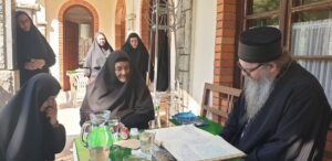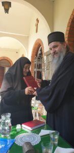 Надовезујући се на његове речи, мати Гликерија је казала да је тај мост направљен његовим доласком овде пре четири деценије, те да му од срца дарује делић моштију Аве Јустина, како је даривала Владику аустралијско – новозеландског Г. Силуана, чија је тема магистарског рада било управо дело Оца Јустина.