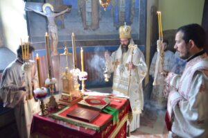 Велики је благослов доћи поново у ово свето место, где се налазе мошти Светог Владике Николаја у храму посвећеном Светом Оцу Николају, великом ранохришћанском угоднику кога је Лелићки Златоуст имао за свог небеског заштитника. Велики је благослов принети молитве са богобојажљивим свештенством и народом, посетити гроб вољеног нам Владике Милутина… речју, пребивати молитвено са свима са којима су везе у љубави Божјој чврсте ма колико нас километара делило, рекао је у празничном слову Епископ аустралијско – новозеландски Г. Силуан, благодарећи администратору Епархије ваљевске Епископу шабачком Г. Лаврентију, уз чији је благослов данас предводио литургијско сабрање, архијерејском заменику протонамеснику Филипу Јаковљевићу, лелићком игуману Георгију и свој браћи свештеницима са којима је увек радо служио и служи кад год се за то прилика укаже. Како нас учи Свето јеванђеље, ми немамо други правац и други пут, него да се тискамо око Господа Христа и да будемо у благодатном општењу у Његовим светињама.