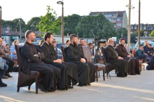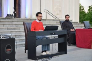 Добродошлицу госту песмом је пожелео хор свештеника и богослова, а он је за крај извео на клавијатури једну своју композицију, што је додатно одушевило посетиоце трибине.