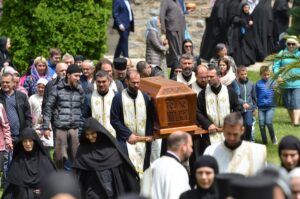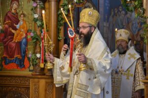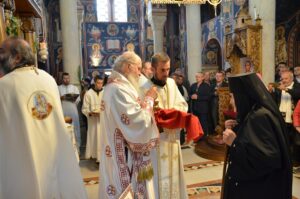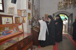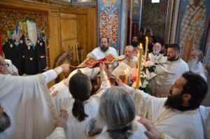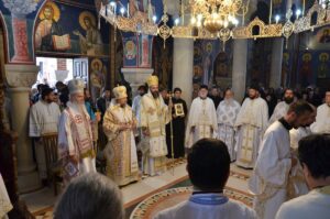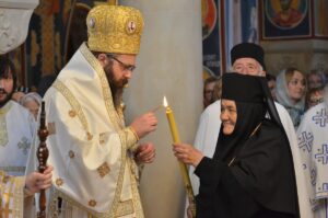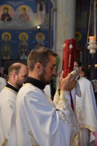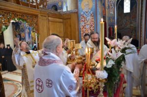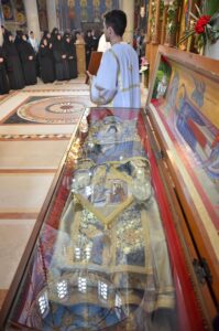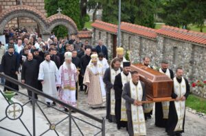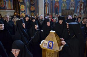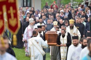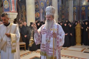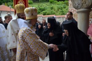 - Ми се окупљамо у дану у коме вршимо спомен на њега. Присећамо се његовог живота и то је наша радост, која је уједно и пасхална радост. Преподобни Отац Јустин нас је учио како да остваримо своју личну пасху. Како да идемо од мржње ка љубави, од рушења ка зидању, јер то је наша лична пасха – закључио је Митрополит Јован. Он је заблагодарио Патријарху српском Г. Порфирију на благослову да данас служи Литургију у заветном храму Оца Јустина, Епископима Теодосију и Силуану и свима који су били део светојустиновске свечаности . Честитајући славу мати игуманији Гликерији и њеним сестрама, Митрополит Јован јој је даровао кутију за тамјан у знак сећања на данашње заједничарење.