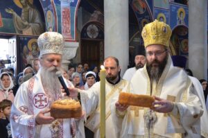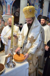 Након Свете Архијерејске Литургије је преломљен славски колач и освећено жито и вино. Празник Преподобног Оца Јустина ове године први пут је прослављен без блаженоупокојених Митрополита Амфилохија и Епископа Атанасија, његових духовних синова и настављача његовог богословског дела, односно други пут без Епископа Милутина, који је као духовни старатељ верних у Епархији ваљевској сведочио светојустиновски и светониколајевски пут служења Господу.