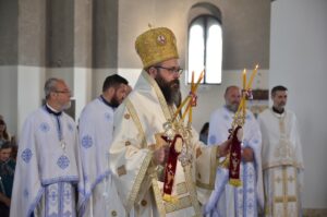 - Обуцимо се у силу с висине, браћо и сестре! Како? Сваком врлином хришћанском. Светотајинским и световрлинским животом, тако нас је учио Свети Јустин Ћелијски. Не може светотајински без световрлинског, јер Бог потребује човека, а не робота. Зато је важно да на испружену руку Божју и ми испружимо своју и уђемо у Његов загрљај. Да сарађујемо, да се трудимо, а Бог ће дати снаге да постанемо оно што смо призвани да будемо, богољуди по благодати – рекао је Владика Силуан. Он је изразио неизмерну радост што је у прилици да поново буде са народом који „испуњава храмове и у радне дане“, а то је знак да тај народ може да изнедри свете људе о чему нам историја и говори.