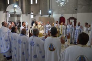 Свету Архијерејску Литургију у Храму Васкрсења Христовог предводио је Преосвећени Епископ аустралијско – новозеландски Г. Силуан, уз саслуживање свог заменика архимандрита Петра и свештенослужитеља Епархије ваљевске. Свој печат свечаном богослужењу дали су Хор свештеника и богослова, под управом протонамесника Бранка Чолића, и Дечји хор „Хаџи Рувим“ са диригентом Вањом Урошевић. У богослужењу су молитвено учествовали градоначелник Ваљева Лазар Гојковић са сарадницима, представници Војске Србије и јавних установа града.