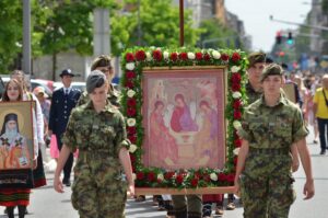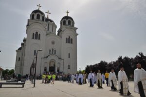 Лета Господњег 2021. Град Ваљево поново је прославио крсну славу великом молитвеном свечаношћу, онако како се то чинило годинама пре, а како је изостало прошле године услед пандемијских околности. Света Педесетница или Духови, како се у народу зна рећи, рођендан је Цркве Божје. У њој прослављамо љубав Божју која се излила на род људски и овај свет. Прослављамо програм Божје љубав за овај свет, а тај програм се зове Црква – заједница икона Божјих, преко којих и сва твар улази у загрљај са Богом, део је празничне проповеди Епископа Силуана у саборном храму. Наш пут је смислен само ако на њему видимо Богочовека Христа. Све добија своју праву и коначну вредност уколико је проткано вредношћу и вечношћу коју Бог дарује роду људском управо кроз Свету Цркву у ове дане Педесетнице.