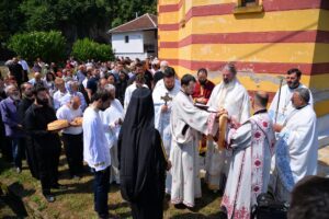 - Нас Србе је Бог изабрао да имамо ту силу и снагу. Да имамо директни контакт са Господом Исусом Христом. Докле год будемо имали Цркву, а имаћемо је до краја времена, нико нам ништа неће моћи – рекао је отац Арсеније, упутивши благодарје Владики Исихију што је дошао у Рибницу и увеличао данашњу свечаност. Слово у част небеских заштитника Рибнице, Владика Исихије је заокружио благосиљањем рибничке обитељи.
