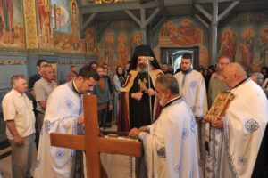 Епископ Исихије је подвукао да је Литургија пројава Царства Божјег, те да су највеће светиње Тело и Крв Господња које примамо у себе током Светог Причешћа којем је напослетку приступио велики број верника.