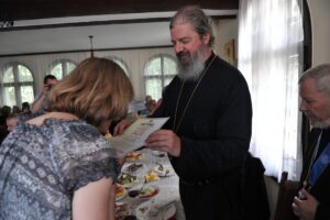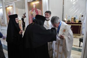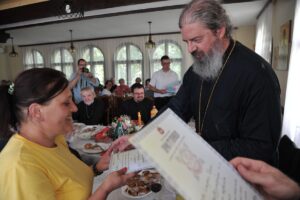 Светом причешћу приступио је велики број верника, а затим су чланице Кола српских сестара принеле колач и жито које је Владика Исихије освештао, честитајући им славу, а дугогодишњи благајник Епархије ваљевске, умировљени протојереј-ставрофор Живојин Петровић се у име такође одликованог проте Михаила Павловића, и у своје име, захвалио на највишем одликовању Епархије ваљевске. Након Свете Архијерејске Литургије уприличена је трпеза љубави у Парохијском дому при Храму Покрова Пресвете Богородице где се на ордену захвалио и умировљени протојереј-ставрофор Михаило Павловић, дугогодишњи рачуноиспитач Епархије ваљевске, који је пожелео његовом, и наследнику проте Живојина, протођакону Бранимиру Терзићу успеха у раду. Отац Михаило се подсетио рада са почившим Владиком Милутином чија је жеља била да отац Живојин и он добију орден и пожелео Епископу Исихију да води брод Епархије ваљевске ка сигурном пристаништу – Господу. Ваљевски архијереј се захвалио свештеницима Михаилу и Живојину на досадашњем раду, истичући да они настављају да служе у славу Господњу. Један од домаћина сабрања јереј Игор Илић, духовник Кола српских сестара, пожелео је да се у радости годинама сабирамо око Васкрслог Христа и Преподобне мати Евгеније.