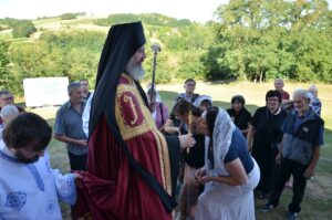 - Од ње долази славни хришћански поздрав „Христос васкрсе“. Нажалост, први пут није добила одговор „Ваистину васкрсе“, јер апостоли тад у то нису могли да поверују. Тек кад им се Господ јавио, уверили су се… Апостоли су представници мушког начина веровања. Веровања, које тражи догмате и учења, а женски начин је начин срца и дубоког осећања, коме не требају рационална уверавања. Свако од нас има оба начина и треба да их сједини. Онда имамо богопознање – волимо Га срцем и исповедамо умом својим. Света Марија Магдалина је велика заштитница народа, посебно жена, а и заштитница храмова у нашој Цркви, укључујући и овај дивни храм у овој дивној природи – рекао је Владика Исихије, позвавши верни народ да се сви заједно њој молимо и прослављамо Господа како је то она чинила.