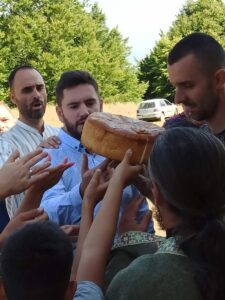 У наставку сабрања домаћин Жељко Јовановић позвао је верни народ на трпезу љубави, која је улепшана разним песмама Светог Владике Николаја.