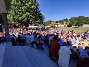 - Добро је бити са Господом! А шта је друго сваки и храм и сваки манастир, него гора Тавор? Ми смо данас овде, на овом „ваљевском Тавору“, у овој светој обитељи, крај моштију Светог Владике Николаја, молитвено окупљени, јер нам је добро бити на Светој Литургији и добро нам је бити са Господом. То су нам потврдили и наш Владика Николај и бројни светитељи, који су се целог живота трудили да буду у заједници са Богом. Сви смо позвани да будемо у заједници са Богом, а бићемо ако се будемо молили и долазили на Свете Литургије – рекао је отац Драган Алексић.