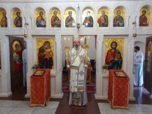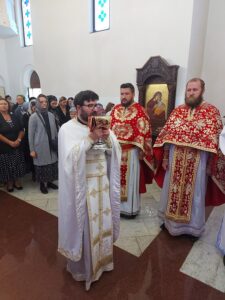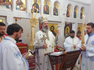 У литургијској проповеди, заснованој на јеванђељској причи о исцељењу дечака месечара (Мт 17, 14 – 23), Епископ Исихије указао је важност осећања вере. Речи прекора „О, роде неверни и покварени“ упућене Његовим ученицима, упућене су и нама. Наиме, иако су имали силу Божју и били блиски Спаситељу, због неверја нису могли исцелити уневољеног. Господ је показао да без Њега ништа не можемо да чинимо.