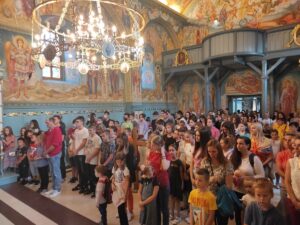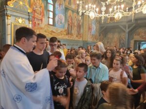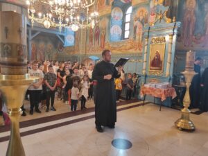 - Деца су наша будућност и у њима лежи спасење нашег народа. Свим нашим васпитачима и учитељима бих поручио да у љубави васпитамо нашу децу. У Посланици Ефесцима Светог апостола Павла видимо да модел који он поставља у васпитању деце јесте љубав – спознати ширину и дубину кроз љубав Христову и пуноћу Његове благодати. Пред свима нама је света дужност да нашу децу поучимо и утврдимо у јеванђељским заповестима. Сабрали смо се овде да знања која ћете пружити деци употпунимо молитвом и да знамо да истинско образовање подразумева и духовну вертикалу, коју добијамо кроз Свету Цркву – истакао је ђакон Александар Петровић.