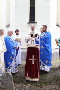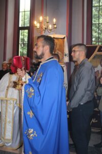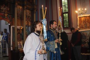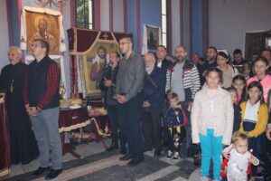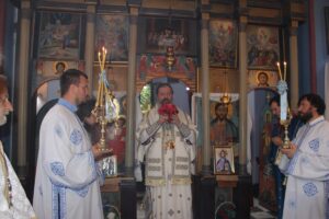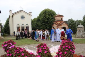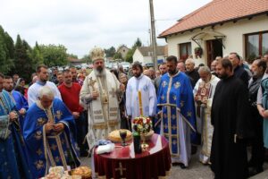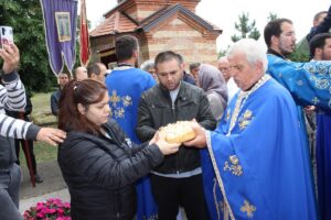 Након Свете Литургије начињен је трократни опход око храма и преломљен славски колач. Сабрање је завршено свечаном трпезом, коју су приредили овдашњи парохијани на челу са домаћинима славе Зораном и Светланом Комадином.