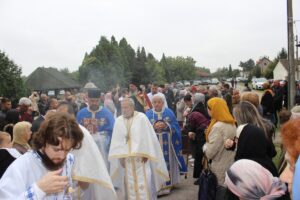 Такође, указао је ваљевски архијереј, Пресвета Богородица је са нама на Светој Литургији. И сви свети су са нама на Светој Литургији. Не само људи, већ и анђелске силе, а Господ Христос води Литургију и приноси Себе Богу Оцу. Пресвета Богородица је дала Њему тело, одгајила Га и највише страдала кад је Он био разапет на крсту и у страшним мукама предавао дух Свој Богу Оцу. Благодат Божја јој је дала да то може да издржи, јер је требало да буде уз свог Сина у часу у ком Он страда и да се после осведочи Његовом Васкрсењу. Такође, она се удостојила васкрсења и пре општег васкрсења, које сви ми чекамо, закључио је Владика Исихије, узмоливши Мајку Божју да нас све чува и да њене молитве увек буду са нама.