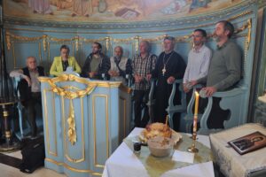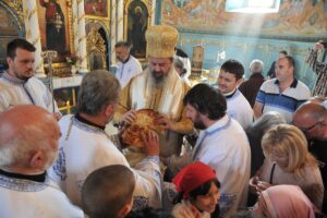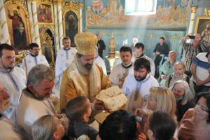 Литургијско сабрање Владика Исихије са саслужитељима заокружио је благосиљањем славског колача, којег су принели чланови Православне народне хришћанске заједнице „Воздвиженије Часног Крста“. То је братство коме припадају сви они који хоће да принесу додатни подвиг Господу, рекао је Владика Исихије. Он је упутио похвале раду братства и духовнику проти Милинку Јовићу, узмоливши Господа да се братство и даље шири и да многи у њему препознају прави начин живота. Јер, нагласио је Владика Исихије, хришћанске заједнице дале су немерљив допринос обнови духовног живота у нашем народу и међу плодовима њихових мисија су бројни свештеници, монаси и епископи. Огроман значај придавао им је Свети Владика Николај. „Нека сви схвате да је хришћанска заједница органски део парохије и црквене општине и укључе се у њен рад“, поручио је Владика Исихије, изразивши спремност да и лично подржи активности братства.
