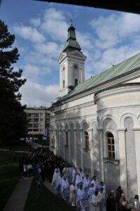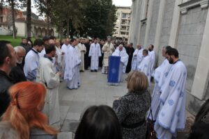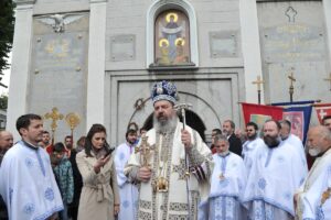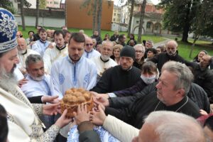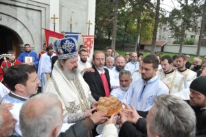 - Пресвета Богородица је заједно са свима нама и окриљује нас својим омофором. Није то само у виђењу Светог Андреја јуродивог, већ у виђењима многих светих људи. Свако од нас би могао у то да се увери, ако живимо у подвигу и ако се трудимо да живимо по јеванђељу Христовом. Пресвета Богородица је наша утеха и мајка свих нас. Не само у преносном смислу. Ми смо сви усиновљени њој преко њеног Сина, а Господа нашег Исуса Христа. Господ је, узевши на Себе људску природу, нас узео као Своју браћу и сестре. Заједно са Њиме, ми смо синови и кћери Бога Оца, а самим тим смо и синови и кћери Пресвете Богородице – казао је Епископ Исихије.