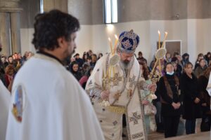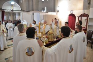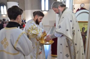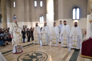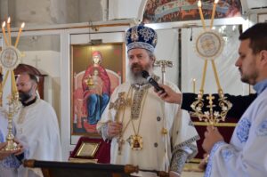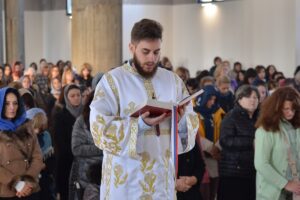 У литургијској проповеди Владика Исихије је указао на безусловну љубав коју Господ Христос пружа у виду утехе и подршке људима који су опхрвани болом услед овоземаљских несрећа, пре свега смрти, коју за последицу има прародитељски грехопад. Човек је створен да буде бесмртан и да се у вечности наслађује својим Творцем, да буде са Њим у заједници љубави, као и заједници са својим ближњим, казао је Епископ Исихије.