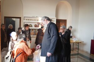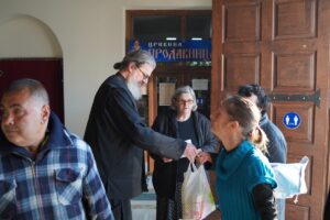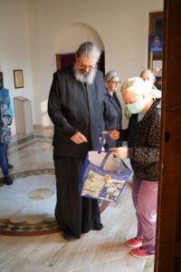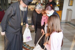 Благословивши присутне, Владика Исихије је уручио дарове, пажљиво помажући свима да их спакују у торбе. Ова акција још једно је у низу милосрдних дела која, вођени љубављу према Господу и ближњем, творе дивни људи окупљени у Колу српских сестара „Преподобна Мати Евгенија“ и ПНХЗ „Воздвиженија Часног Крста“.