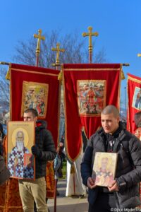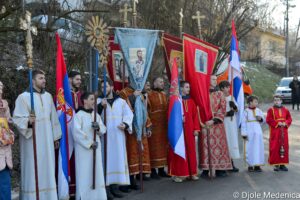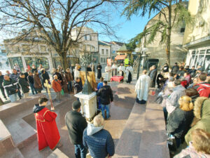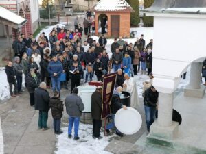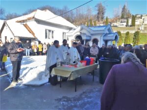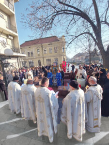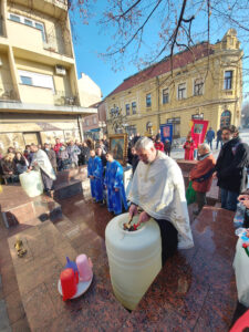 - Да би се природа припремила за непропадљивост која ће наступити после Судњег дана, Христос је дошао на воде Јордана. Уронивши у Јордан, Христос га је посветио, али не само њега, већ читаву водену природу. Данас се освећује вода, а пошто се вода свуда налази, Христос је осветио читаву васељену. Крштење Јованово је било само знак покајања, а хришћанско крштење јесте ново рађање, опроштај свих грехова- поручио је отац Душан Алексић, позвавши верни народ да сви заједно покајањем чистимо своје душе, попут народа који је долазио Светом Јовану Претечи на крштење. Онда ћемо, закључио је он, сви осетити да у нама обитава неописива радост и мир који су залог неба и дар љубави Божје.